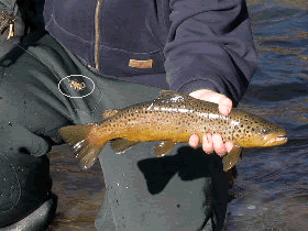 Large attractor is still working on these aggressive Brown Trout. They're still clearing out